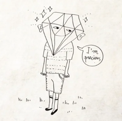 This idea was based on what really happened to me in London. I still have an old drawing of it. I overheard a little boy asking his mum if he was precious, and of course, she said yes. Then he started making a diamond shape around his head and started running, saying "I am precious!".